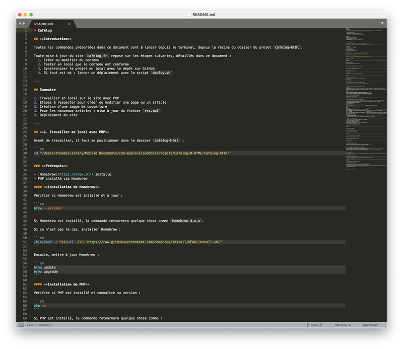 C’était grisant, au début, cette impression de maîtrise, mais au final c’est devenu pénible, un frein à la publication. La procédure était tellement lourde que j’avais noté toutes les étapes dans le README.md associé à mon projet.