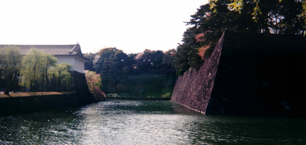 The second shot looks toward the Imperial Palace moat; on the left edge of the frame stands part of Sakashita-mon Gate, one of the palace’s main entrances.