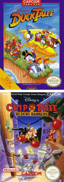 Les jeux de plateforme tirés de licences des dessins animés étaient nombreux sur NES, mais rares sont ceux à avoir vraiment marqué les esprits… sauf quand ils sont signés Capcom. DuckTales et Chip’n Dale: Rescue Rangers sont deux excellents exemples de ce que la plus célèbre des consoles 8 bits peut offrir de mieux dans le genre, grâce une fidélité remarquable à l’univers d’origine, alliée à une maniabilité simple, amusante et efficace.