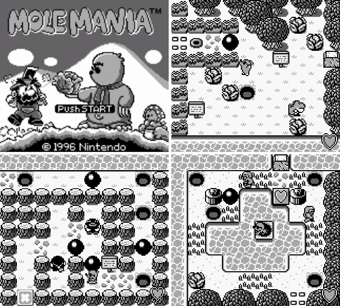 Mole Mania is a cute and addictive puzzle game in which you play as a mole named Muddy. The goal is to move from a room to another, and to do so you have to move a black ball to a gate at the end of the screen on each room. Muddy can push/pull/throw the ball and he can dig to find underground paths to avoid obstacles.