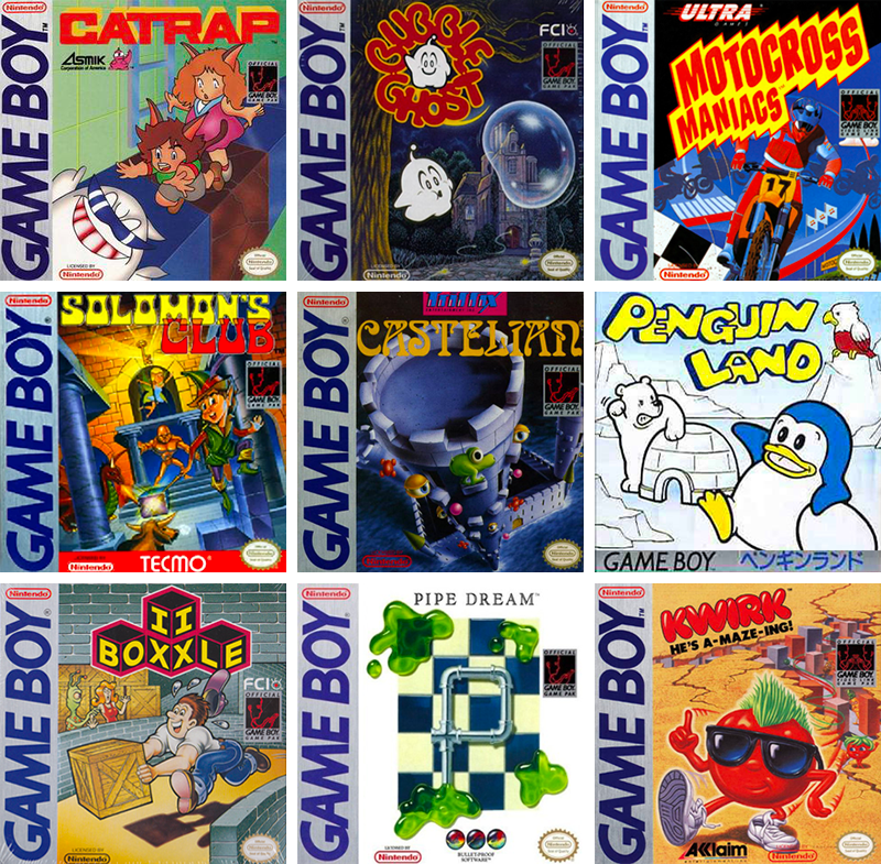 These are all games I used to play on a bootleg cartridge called Super 82 in 1, which, as the name suggests, contained 82 games in one cartridge. It was brought back from Asia by a relative in the mid-90s. I hadn’t played these games for 30 years or so, so it has been fun rediscovering them. They are mostly puzzle games, except for Motocross Maniacs, which is like a more enjoyable and challenging version of the NES Excitebike, but for the Game Boy. That makes them perfect for quick gaming sessions. My favorite is probably Solomon’s Club, which I find more enjoyable than the NES version.